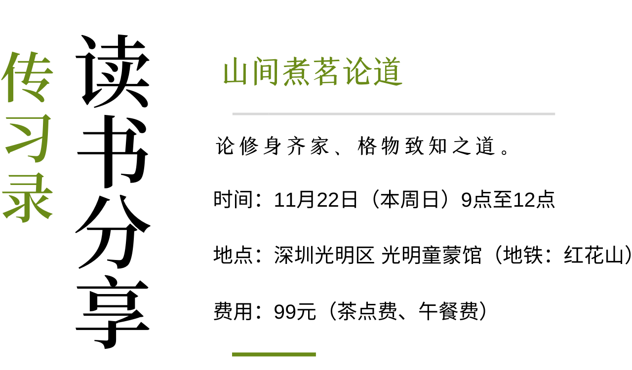 【品茗论道 • 传习私享会】2020年11月22日上午(本周日)深圳红花山,欢迎参加!